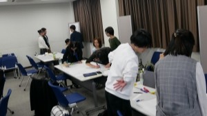 グループワークでは、ヒューマンウェアの理念と、 大阪・関西万博のテーマである「いのち輝く未来社会のデザイン」を掛け合わせた、 「ヒトのカラダのイノベーション」をテーマに「人間にあったら嬉しい機能」について、 28名の参加者の皆さんに議論&考えを発表していただきました。 参加者は高校生から50歳以上までと幅広く、 チームのほとんどのメンバーが初対面という状況下でしたが、 多くの参加者が非常に楽しそうに、 「こういう機能があったら便利だよね!」、「今はこれが手間だよね。」という議論をされている様子や、 1枚の模造紙にチーム全員で絵を描かれている様子からはとても「発想の楽しさと自由さ」を感じました。