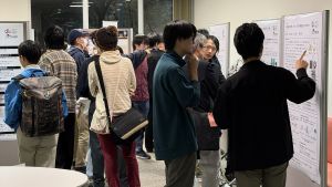 ポスターセッションでは、ヒューマンウェア履修生のグループによる融合研究と、 シンポジウムの運営メンバーによる専門研究の研究内容/研究計画をポスターで発表しました。 様々な属性(高校生・文系学部学生・他履修生など)の方に自身の研究を伝える、 アウトリーチの実践を行うよい機会となりました。 各々の研究分野では当たり前に思われる研究の動機や評価方法、今後の展望などについてもその分野を離れると一般的ではないことや、 誤りなく、しかしわかりやすく伝えることの難しさを肌でも感じていたように思います。 また、どのグループに対しても研究の内容に関する質問や提案などをたくさんいただき、 各々の研究をブラッシュアップすることが出来たと思います。 ご参加いただきありがとうございました。